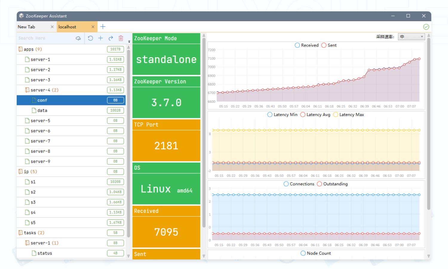 ZooKeeper Assistant 是一款出色的可视化管理、监控工具,可连接多个服务器,树状结构展示节点,标签页管理、监控服务器状态,助你提高开发效率。