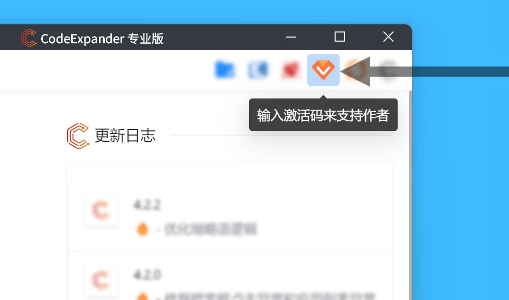 一、运行「CodeExpander」后,点击右上角「V」形图标: