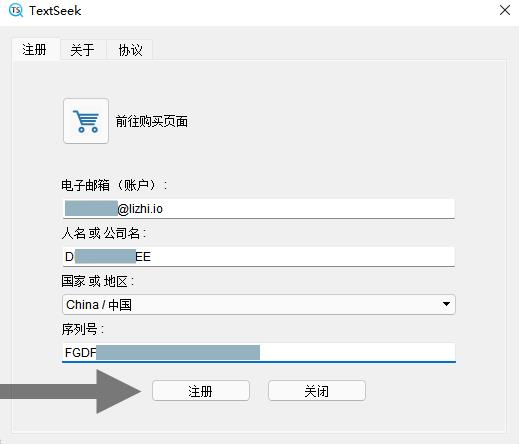 一、运行「TextSeek」后,点击右上角的注册按钮: