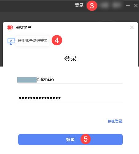 二、打开 ApowerREC,在软件页面依次点击「登录 >使用帐号密码登录」,填入你的授权邮箱并登录: